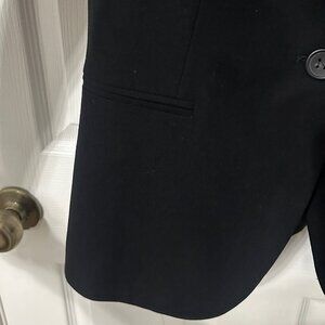Classic black blazer or suit jacket.