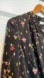 Stunning black blouse featuring vibrant floral patterns and shimmering gold accents. Perfect for versatile styling.