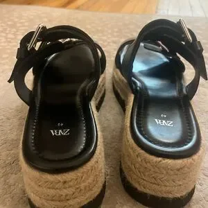 Zara Black Buckle Strap Platform Espadrilles Women's Sandals size 9