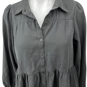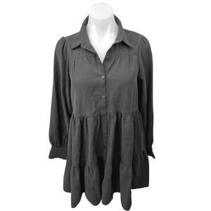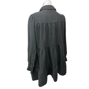 Zara Black Button Down Puff Long Sleeve Collar Tiered Mini Babydoll Dress Size S
