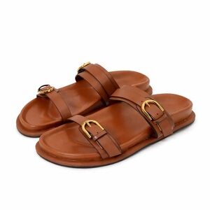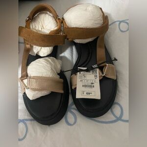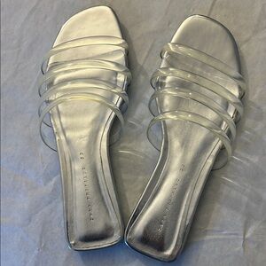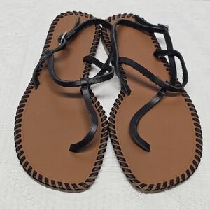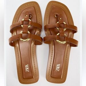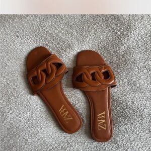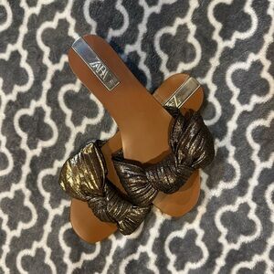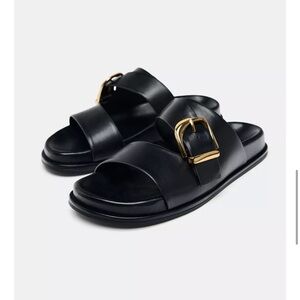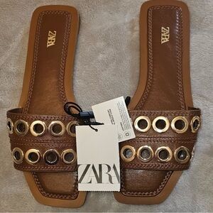 Zara Black Chunk Grommet Hardware Slip On Slides Size 6.5