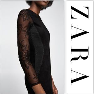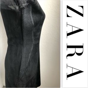 ๐Zara Black Contrasting Faux Suede Dress Size L*