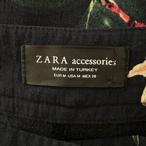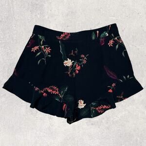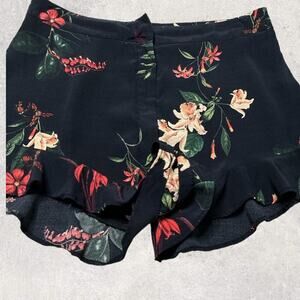 Zara Black Cream Red Floral Print Super High Rise Flowy Ruffle Shorts Sz M