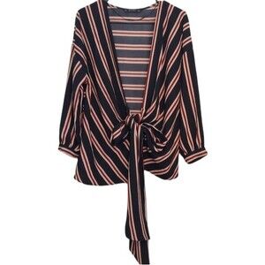 Zara Black & Cream Stripe Wrap Top Blogger's Favorite Neutral Size Medium