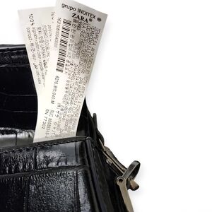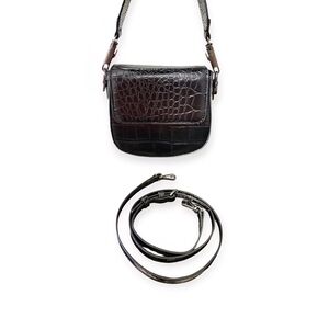 Stylish black crossbody with croc pattern. Ideal for versatile wear.