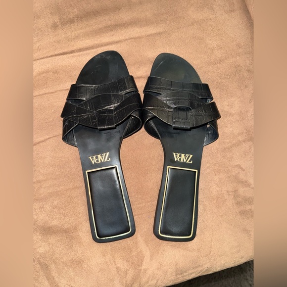 Zara Black Croc-Patterned Sandals