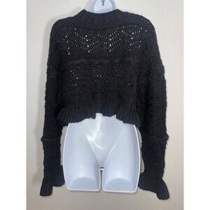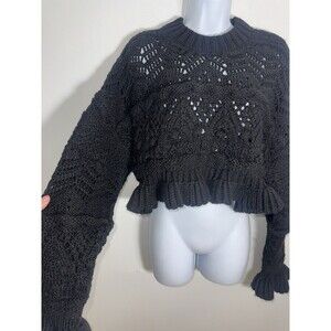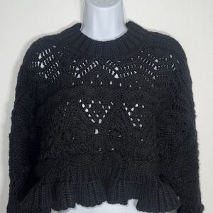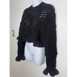 Zara Black Cropped Chunky Knit Ruffle Sleeve Open Weave Sweater Women Small