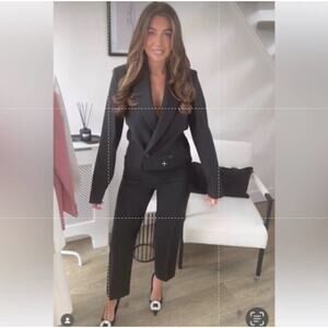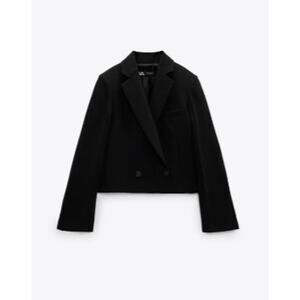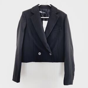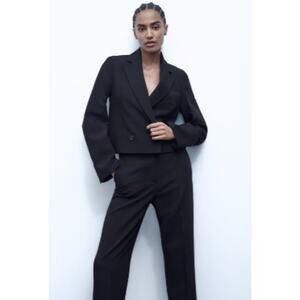 Zara Black Cropped Double Breasted Blazer Suit Jacket