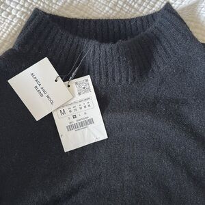 Stylish black cropped sweater. Features long sleeves. Perfect for layering.