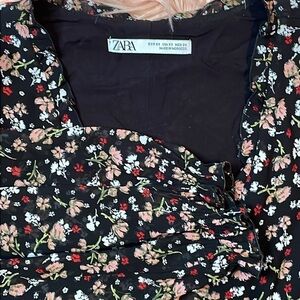 Zara black floral long sleeve dress. V neck, cuffed sleeves. No holes or stains.