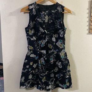 Zara Black Cut Out Tropical Island Print Black Romper Shorts
