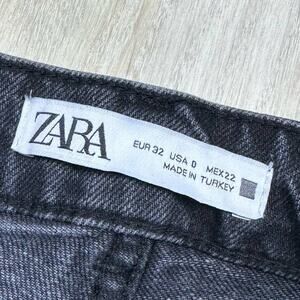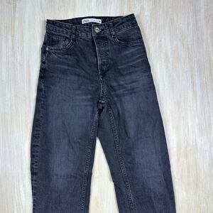 Zara Black Dark Wash Wide Leg High Rise Button Fly Denim Casual Trendy Jeans 0