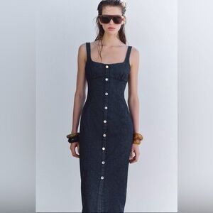 Stylish denim dress with button-down front. Perfect for versatile wear.
