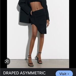Zara Black Draped Asymmetric Skirt High waisted skirt made of knit fabric. Ruched fabric. Asymmetric hem. Side hidden in-seam zip closure.