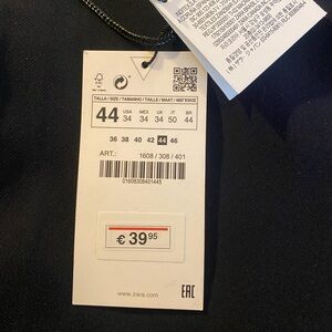 These elegant black dress pants from Zara feature a sleek tapered leg design, perfect for formal occasions. Crafted from a smooth, structured fabric, they offer a sophisticated look that reaches the ankle. Ideal for adding a touch of class to any outfit.