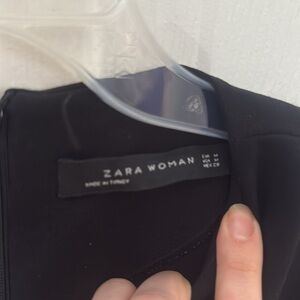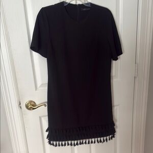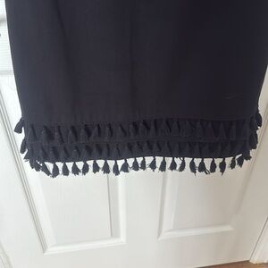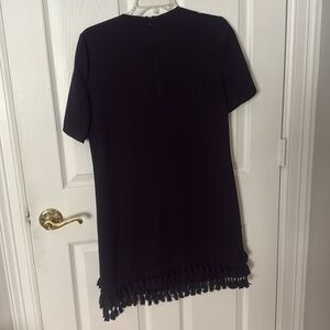 Chic Zara dress in black. Features fringe detail for added style. Size medium. Left sleeve has knitting that needs to be secured as shown. Otherwise perfect condition. Smoke free home.