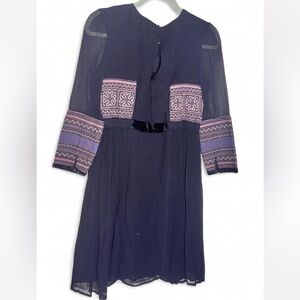 Chic black dress with detailed pink embroidery. Long sleeves add elegance. Perfect for stylish occasions.
