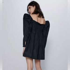 Zara Black Embroidered Puff Sleeve black Mini Dress size M