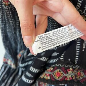 ZARA bohemian-inspired black maxi dress featuring an tiered design with white and multicolor embroidery. Lightweight cotton fabric with a smocked bodice, braided straps, and flowy silhouette for effortless summer style. Size XS - 15" pit to pit (smocked); 41" length from pit.