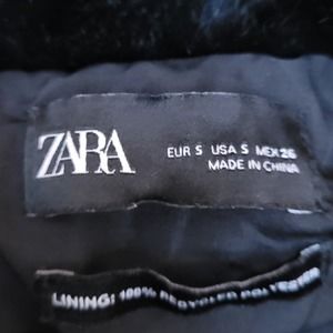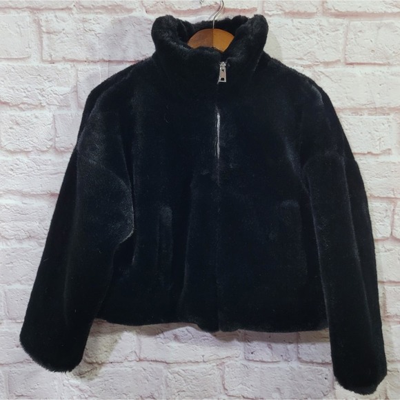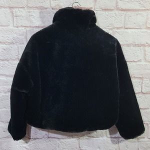 Zara Black Faux Fur Mock Neck Cropped Heavy Winter Jacket