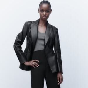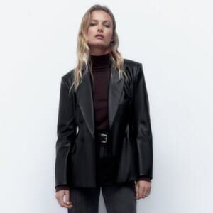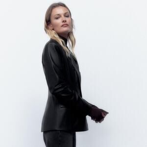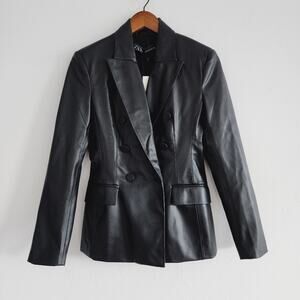 Zara Faux Leather Double Breasted Blazer Jacket Fully Lined