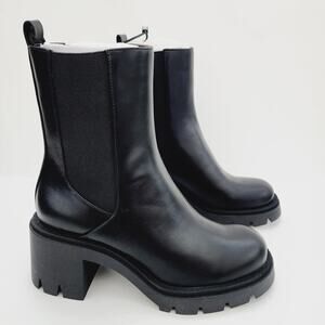 Zara Black Faux Leather Chelsea Boots Chunky Platform Ankle Boot Round Toe Sz 9