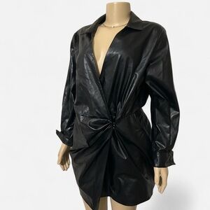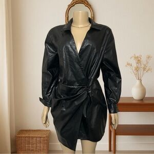 Chic faux leather mini dress. Wrap style with long sleeves. Perfect for a night out.