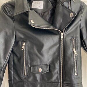 Zara Black Faux Leather Moto Jacket Size 10 (small) with zipper pockets