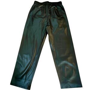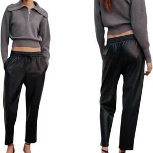 Zara Black Faux Leather Vegan High Rise Pockets Drawstring Jogger Pants Small