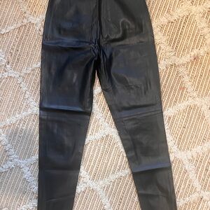 Chic black faux leather-style skinny jeans. Ideal for modern fashion.