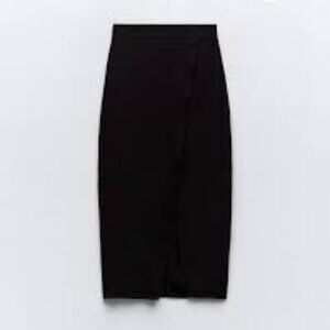 Zara - Black Faux Wrap Midi Skirt - L - NWT Turkey