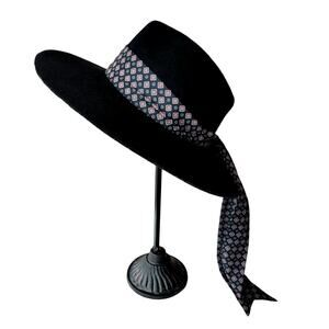 Zara Black Felt Hat with Printed Scarf Size Medium Boho Bohemian