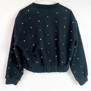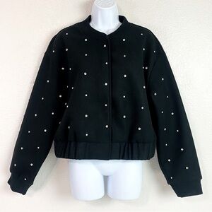 Zara Black Felt Texture Rhinestone Studded Bomber Jacket Size L