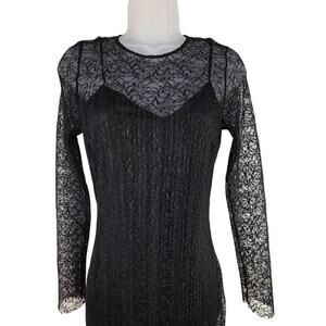 Zara Black Fitted Lace Dress Lined Semi Sheer Witchy Whismygoth Size Small Midi