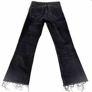 Zara Black Flared Wide Leg Raw Hem Denim Jeans Zip Up Size 6