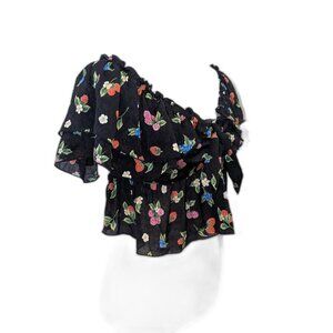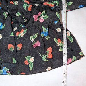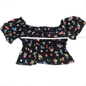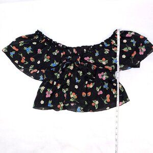 Zara | Black Floral & Berry Print Ruffle Crop Top | Size Small