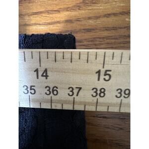 Perfect for weddings, parties, or even business events, this staple piece is a must-have. The zip closure ensures a secure fit, while the straight and pencil style creates a flattering silhouette. This skirt is a size small. Add this black lace pencil skirt to your collection and experience timeless elegance.