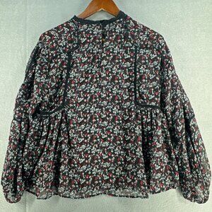 Zara Black Floral Sheer Crochet Peasant Blouse – Long Sleeve, Size L NWT