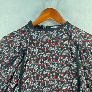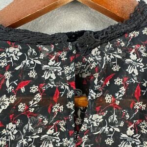 Zara Black Floral Sheer Crochet Peasant Blouse – Size L NWT