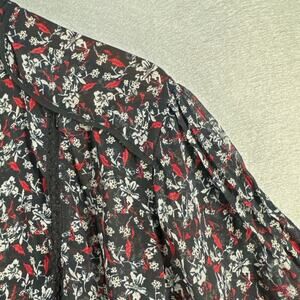 Color / Print: Sheer black base with red, white, and green floral accents