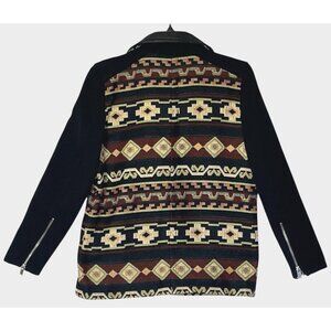 Zara Black Genuine Leather Aztec Southwestern Tapestry Boho Moto Zip Jacket