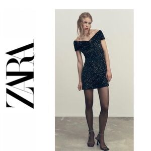 Zara Black Glitter Off-Shoulder Mini Dress NWT