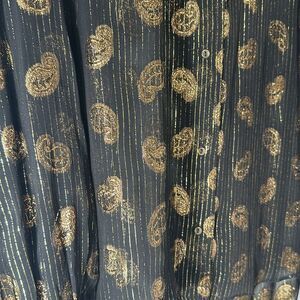 Zara Black & Gold Metallic Paisley Print Button Down Long Sleeve Blouse