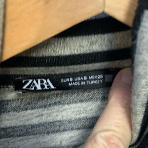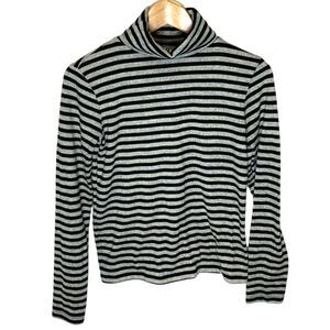 Zara Black Gray Striped Long Sleeve Turtleneck Soft Sweater Top Size S