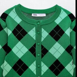 Gorgeous Zara Green Argyle Knit Cardigan Bloggers Favorite Size Medium