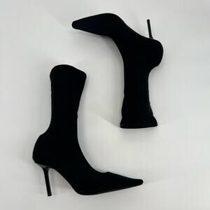 Zara Black High Heel Sock Boots square toe stiletto heel chic Size 37 / US 6.5