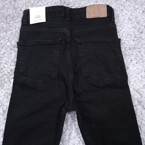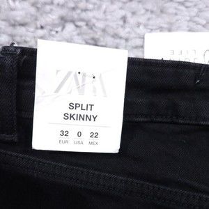 Zara Black High Rise Split Leg Skinny Jeans Distressed Ripped Knee Size 0