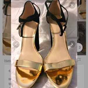 Zara Black & Hold Strappy Platform Sandals Block heels Size 6
