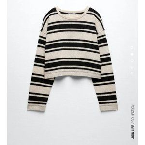Zara Black Ivory Striped Cropped Rustic Sweater