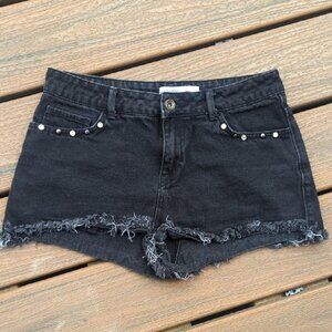 Zara Black Jean Shorts Frayed Hem With Embellishments - Sz 6 Great Condition
